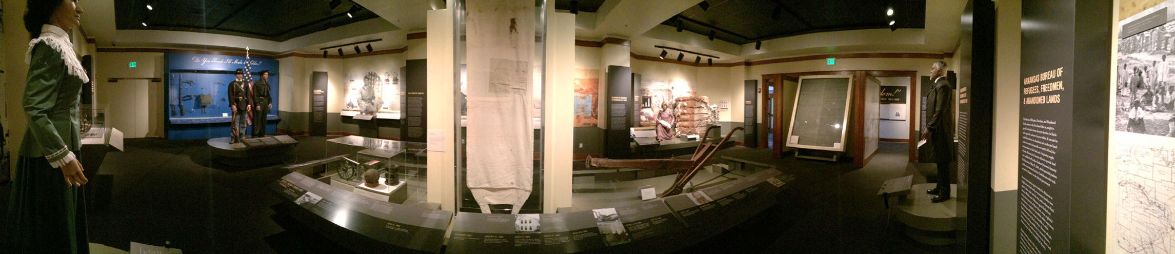 The Civil War radically changed the lives of all Arkansans, especially those of African descent. The war destroyed a society and an economy that had enslaved Africans and used them as chattel property. Through personal artifacts, historic Civil War photography, carefully costumed museum figures and interactive audio, “Freedom! Oh, Freedom!” tells a story of transformation. It allows visitors the opportunity to explore the African American perspective of the Civil War from the lens of slavery, the contributions of African American soldiers, and what happened through and after the Reconstruction Era.